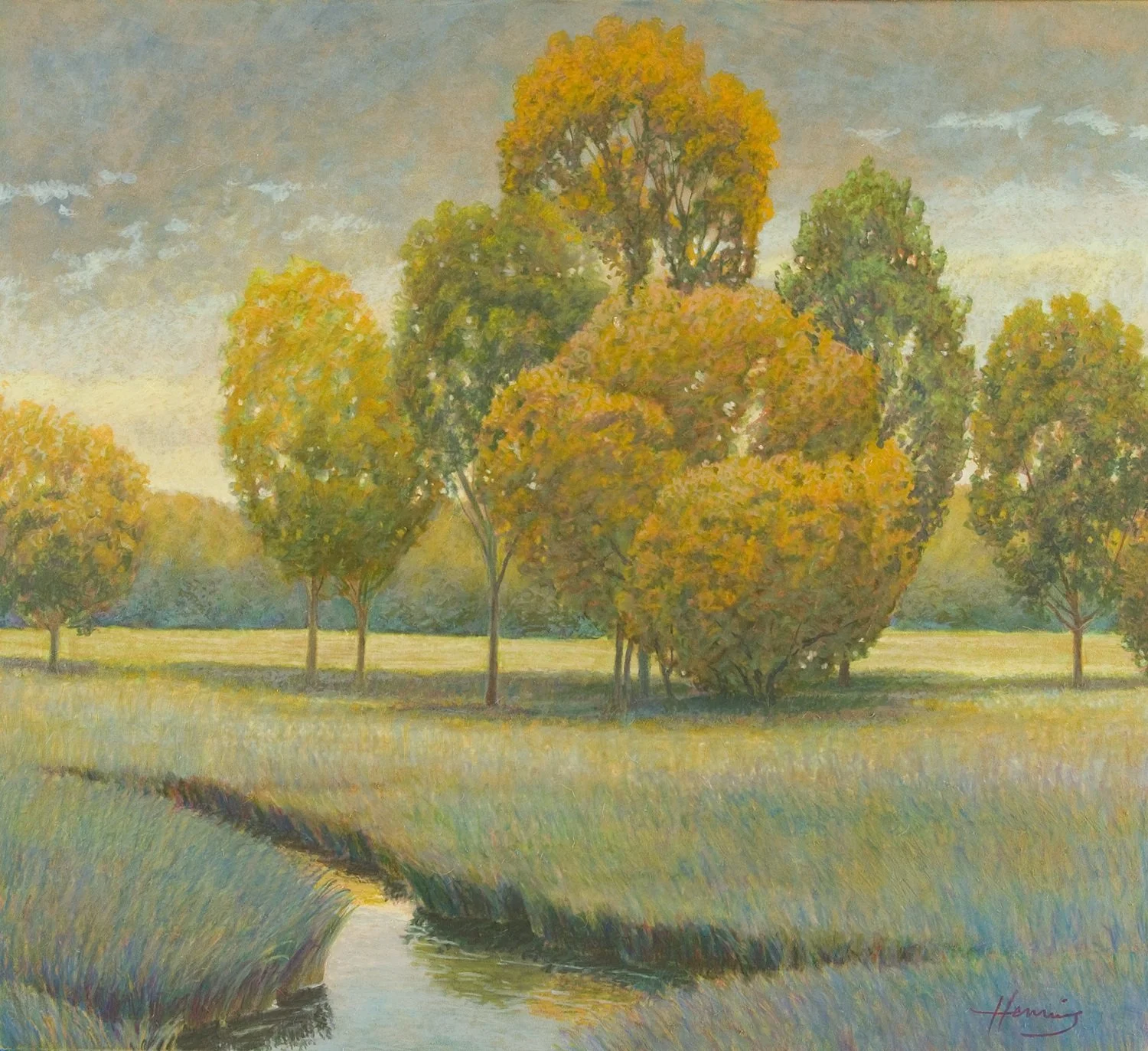 “I’m fascinated by the way landscapes affect people,” says Henning. “I try to capture that feeling of contentment and mystery that landscapes evoke. I want to paint scenes that people can enter with ease, that both soothe and inspire.”
